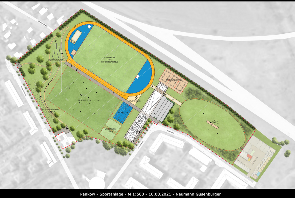 Wie z.B. in einem Beitrag der Berliner Woche vom 12.08.2019 zu lesen ist, gibt es seit längerem ein Vorhaben den Bolzplatz in der Röländer Strasse in eine Sportanlage mit 3 Plätzen nebst Gebäuden auszubauen. Dieses Vorhaben ist nunmehr soweit fortgeschritten, dass es einen Entwurf und zugehörige Finanzierung gibt.